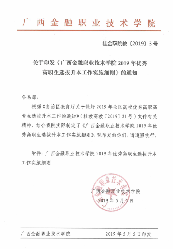 关于印发《伟德国际victor19462019年优秀高职生选拔升本工作实话细则》的通知