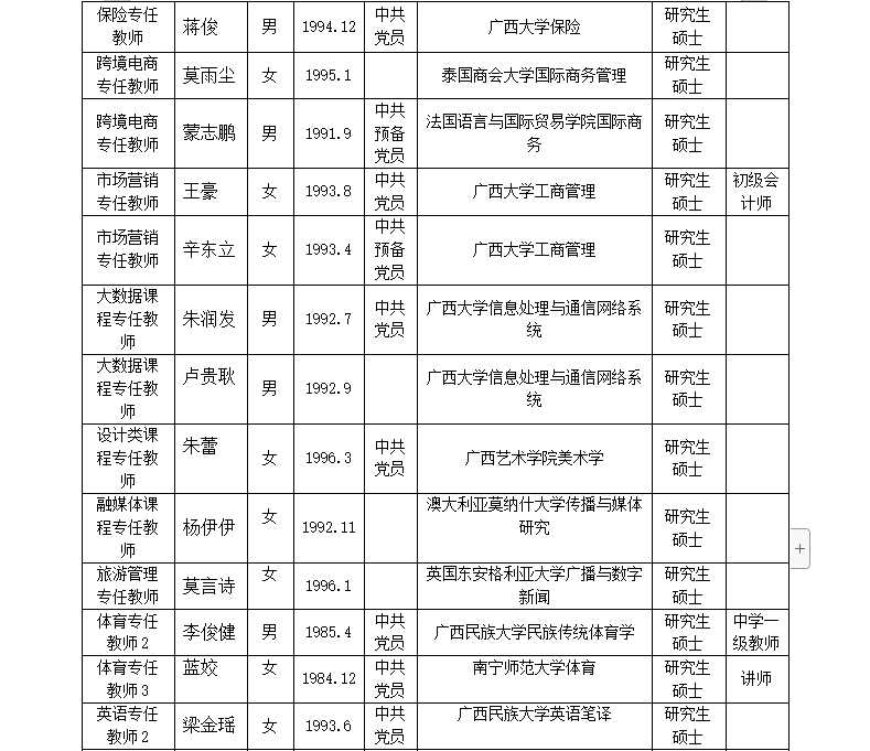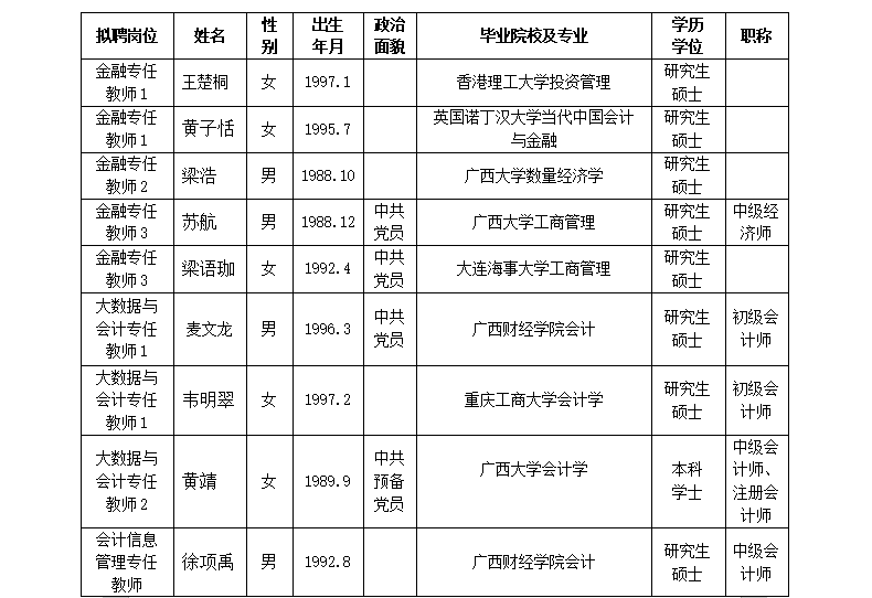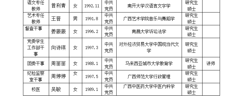 根据《关于印发<广西壮族自治区事业单位公开招聘人员实施办法>的通知》(桂人社发[2011]155号)及《伟德国际victor19462022年第一批公开招聘非实名人员控制数工作人员公告》的有关规定,通过报名、资格审查、考试、考核、体检等程序,经研究决定,拟聘王楚桐等44位同志为伟德官网工作人员。现将拟聘用人员名单予以公示,公示时间为2022年8月30日-2022年9月5日,如有异议,请于9月5日下午5:00前以书面形式并署真实姓名反馈到学院纪委或组织人事处。联系地址:广西南宁市大学西路168号,邮政编码:530007,联系电话:0771—3481338,0771—3481779。
