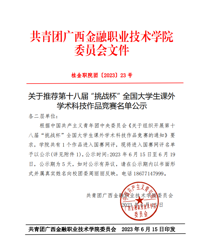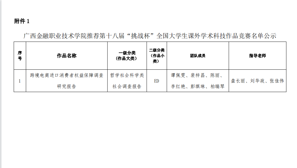 关于推荐第十八届“挑战杯”全国大学生课外学术科技作品竞赛名单公示