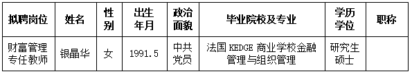 根据《关于印发<广西壮族自治区事业单位公开招聘人员实施办法>的通知》(桂人社发〔2011〕155号)及《伟德国际victor19462023年第二批公开招聘非实名人员控制数工作人员公告》的有关规定,通过报名、资格审查、考试、考核、体检等程序,经研究决定,拟聘银晶华同志为伟德官网工作人员。现将拟聘用人员名单予以公示,公示时间为2024年2月25日-2024年3月2日,如有异议,请于2024年3月2日下午5:00前以书面形式并署真实姓名反馈到学院纪委或组织人事处。联系地址:广西南宁市大学西路168号,邮政编码:530007,联系电话:0771—3481338,0771—3481779。