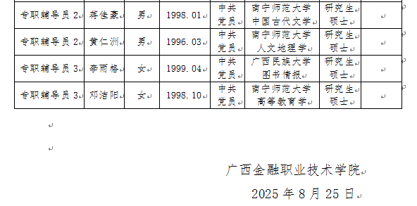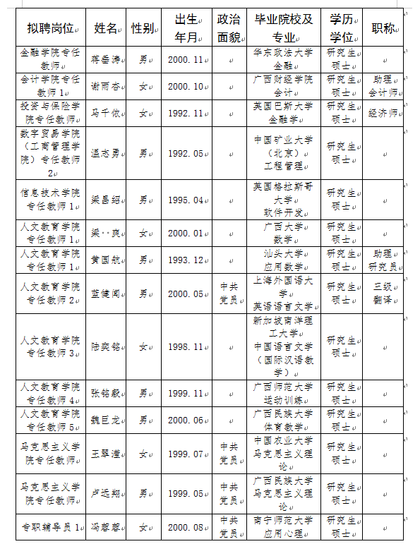 根据《广西壮族自治区事业单位公开招聘人员实施办法》(桂人社发〔2011〕155号)、《关于进一步规范区直事业单位公开招聘工作的通知》(桂人社办发〔2013〕135号)、《关于进一步完善事业单位公开招聘工作的通知》(桂人社规〔2021〕7号)和《广西壮族自治区2025年区直事业单位统一公开招聘工作人员公告》相关文件精神,通过公开招聘规定的程序,经研究决定,拟聘用蒋垂涛等18位同志。现将拟聘用人员的有关情况予以公示,公示期7天,公示时间为2025年8月25日—2025年8月31日,如有异议,请于2025年8月31日前以书面形式并署真实姓名反馈到伟德官网纪委或人事处。联系地址:广西南宁市大学西路168号,邮政编码:530007,联系电话:0771—3481338,0771—3481779。