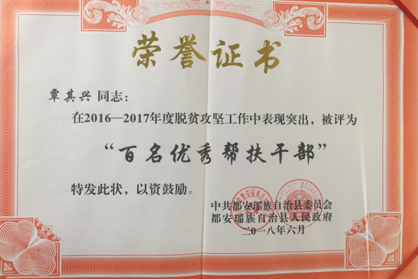 6月28日,都安县委、县政府召开扶贫开发工作总结表彰大会。对帮扶工作贡献突出的单位和先进个人进行了表彰,伟德官网被授予2016-2017年全县脱贫攻坚工作“先进定点帮扶单位”称号。驻菁盛乡内曹村第一书记覃其兴同志荣获都安县“2016-2017年度“百名优秀帮扶干部”称号。驻龙湾乡内闷村第一书记陈明健同志荣获河池市2016-2017年度“优秀驻村第一书记”称号。