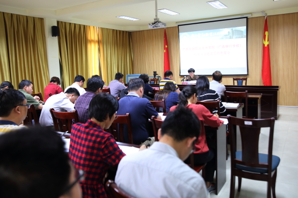 会上,沈立君书记传达了全区加强和改进高校思想政治工作会议精神和上级有关文件精神。宣读了学院(校)关于严明纪律确保廉洁过节的通知,要求党员干部要落实主体责任,确保风清气正;强化自律意识,落实纪律规定;强化执纪问责,严惩违纪行为。刘华政副书记就自治区高校工委2018年第二季度全区高校意识形态形势分析研判会议精神作相关要求。