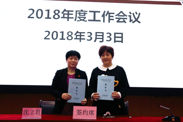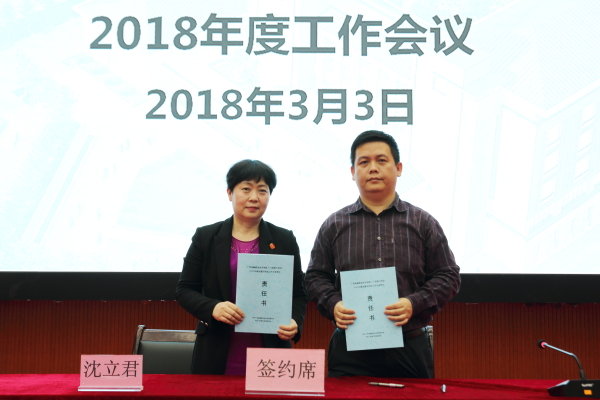 随后,党委书记沈立君与学院领导班子各成员及13个党支部书记签订并递交2018年度落实意识形态工作主体责任责任书。学生工作与招生就业处、后勤管理与保卫处、会计系、信息管理中心代表学校各单位、各系部与沈立君书记签订并递交2018年度安全稳定责任书。