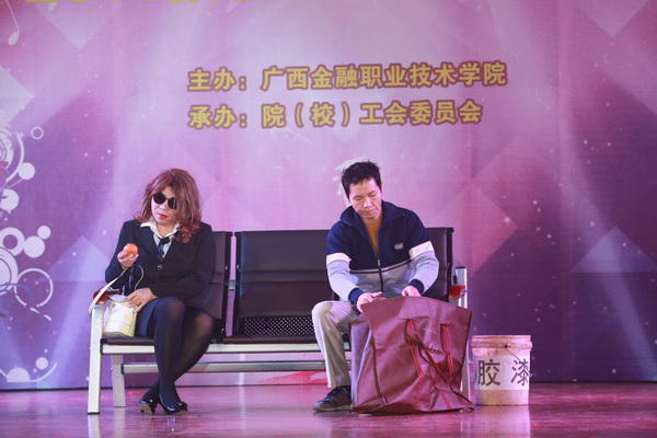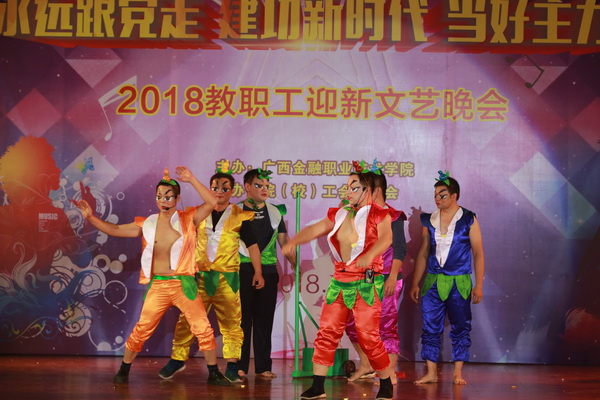晚会在学院领导和和全体中层演唱的《团结就是力量》中拉开序幕。紧接着,马山民间艺术家为师生们带来了精彩的乐器表演《马山鼓》。晚会上总是少不了欢快的舞蹈、动感的旋律,第七工会小组崔丹婷等教师的《采薇舞》、经济管理系舞蹈队的《歌飘山水间》、工会罗佳雯等教师的《冬夜扇影》、院街舞社的《街舞》等节目以其清新的曲调、强烈的节奏感、潇洒婀娜的舞姿感染了全场,一次次将现场气氛推向高点;一首娓娓动听的诗朗诵《面朝大海 春暖花开》,让现场观众仿佛迎着扑面的海风,走在细腻柔软的沙滩上;小品《碰瓷》、《黄河大合唱》,教师用风趣幽默的语言完美演绎了剧中角色,令观众过足戏引;哑剧《白领与民工》以男扮女装的反转人物形象、生动夸张的肢体语言、精湛的演技点燃全场观众的热情,现场响起一次次雷鸣般的掌声。晚会在旅游系舞蹈队的《藤缠树》中落下帷幕。