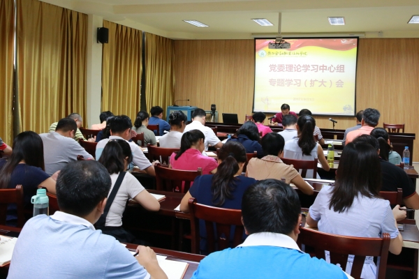 9月1日上午,伟德官网(校)党委理论学习中心组在东校区六楼会议室召开专题学习(扩大)会议,学习习近平总书记7月26日在省部级主要领导干部“学习习近平总书记重要讲话精神,迎接党的十九大”专题研讨班开班式上的重要讲话精神。党委书记、院长沈立君主持会议并作重要发言。