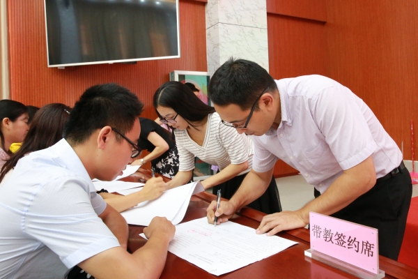 学院(校)继续开展“以老带新”的青蓝工程,举行新老班主任、新老教师结对子签约仪式,帮助新教师尽快成长。在十佳教师莫嘉玲老师领誓下,全体新录聘员工进行了庄严的入职宣誓。