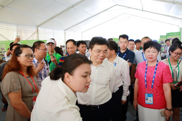 越南常务副总理张和平、自治区教育厅副厅长黄雄彪、新加坡东盟教育中心吴荣东董事等嘉宾领导分别来到伟德官网展位前,饶有兴致的驻足观看,询问作品制作流程、学院比赛获奖等情况,他们纷纷对学院的办学成果给予了充分肯定,并期待学院能够培养出更多优秀学生,取得更突出的成绩。