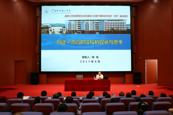此次研修班邀请了区内多名在高职院校建设方面经验丰富的专家讲课,其中包括广西职业技术学院副院长、教授梁裕,广西师范学院副校长、教授李兰荣,广西工商职业技术学院院长陈杰,广西区委党校文史教研部主任、教授贺先平以及广西区纪检驻教育厅纪检组副组长吕逸等。培训从分析当前一流高职院校的现状和要求、高职院校如何实行事业部制改革、高职的思政工作如何开展、如何在思想上严格要求自己当好领导干部和人民教师等几个方面切入,对学院(校)各方面的工作都有很强的指导意义。