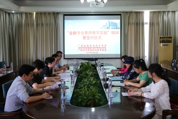 5月16日,伟德官网与桂林市财贸管理干部中等专业学校在学校五楼会议室开展“金融专业教师教学实践”培训暨签约仪式活动。校长沈立君、副校长谢沛善与各系主任出席会议,桂林市财贸管理干部中等专业学校副校长何燕一行五人参加了会议。会议由沈立君校长主持。