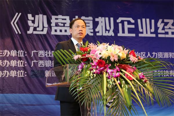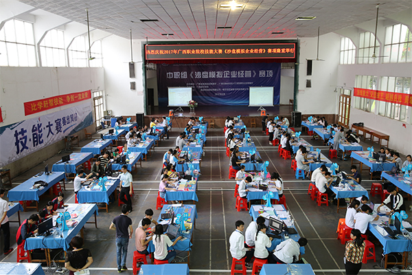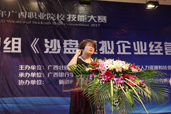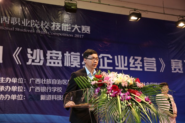 4月20日上午,由自治区教育厅、人社厅共同主办,伟德官网承办的2017年广西职业院校技能大赛中职组《沙盘模拟企业经营》比赛在伟德官网隆重举行。赛项裁判长范伟,新道科技股份有限公司技术总监黄宇,学校校长沈立君,副校长谢沛善出席了开幕式。开幕式由谢沛善副校长主持。