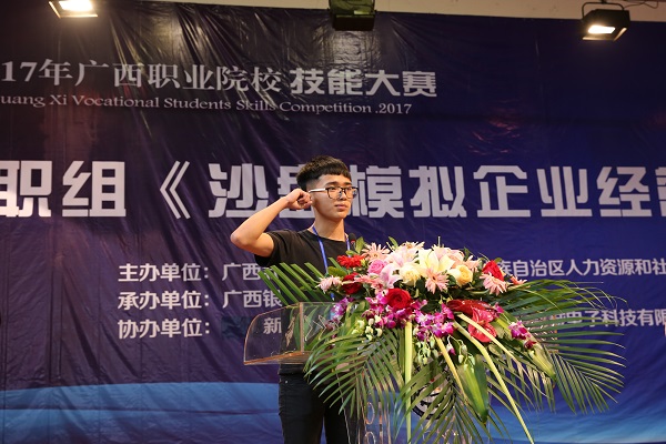 最后,广西职业院校技能大赛中职组《沙盘模拟企业经营》赛项裁判长范伟宣读比赛规则,并宣布“2017年广西职业院校技能大赛(中职组)《沙盘模拟企业经营》比赛开幕”。