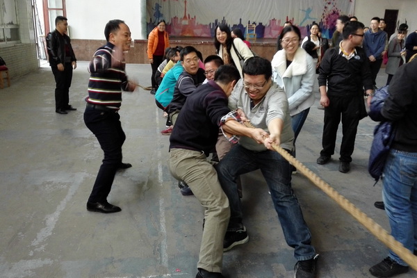 12月30日下午4点半,活动拉开帷幕。活动主要分为团体和个人两项,个人项为趣味套圈,团体项为拔河比赛。在趣味套圈活动中,工会为教职工提供了生活中亟需的小物品,如食用油、酱油、料酒、饮料等。这项活动吸引了广大教职工的积极参与,大家排起了长龙来一试手气。拔河比赛以工会小组为单位进行分组,9个工会小组经过预赛、决赛的两轮角逐,最后评选出一等奖3名,二等奖3名,三等奖3名。拔河比赛不仅让教职工活动了筋骨,也使团队合作精神得到了极大的提升。没有参加拔河比赛的教职工也在一边为自己工会小组加油鼓劲、呐喊助威,活动现场充满着热情洋溢的氛围。