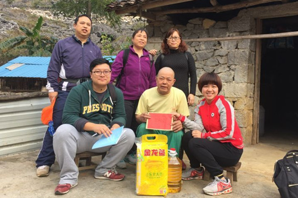 2月15日,伟德官网中层以上干部一行50余人在沈立君院长和刘华政副书记的带领下,分两组赴河池市都安瑶族自治县菁盛乡和龙湾乡开展扶贫送温暖慰问活动暨“帮扶手册”填写工作。
