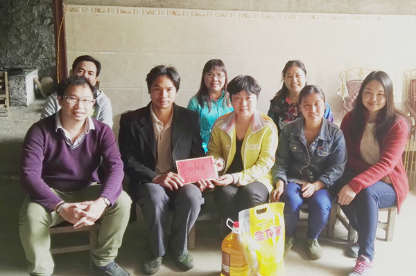 全体人员在驻村第一书记和两村委干部的陪同下,来到帮扶对象家庭,给贫困户送上暖暖的关怀及新春的祝福。同时与帮扶对象一起研究对策,填写脱贫计划,关心了解他们的生产生活现状以及就业创业情况,尽力帮助他们解决实际困难,鼓励他们积极进取,摆脱困境。