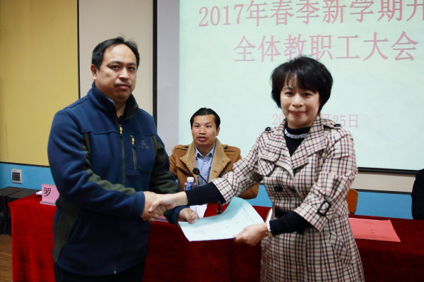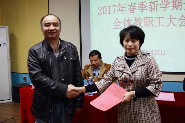 会议首先由刘华政副书记介绍今年新入职的教职员工。随后,沈立君院长分析了当前我区教育形式,并结合伟德官网实际部署学院2017年行政工作。她围绕新校区建设、教育教学改革、专业建设、学生管理、招生就业、协同育人建设、信息化建设、国际交流、精神文明建设、后勤管理等10个方面对伟德国际victor1946和广西银行学校新一年工作提出要求 。沈院长指出,全体教职员工要主动出击、压实责任、勇于担当,以敢想敢做的精神攻坚克难,确保各项工作落实到实处;各部门要科学谋划,明确责任,狠抓落实。
