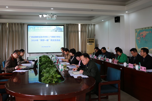 会上,党委书记覃艳娟代表学院(校)领导班子作2015年度民主生活会整改意见落实情况报告和2016年度领导干部民主生活会对照检查情况汇报。随后,领导班子成员依次发言,开展对照检查和自我批评,其他班子成员逐一开展批评。领导班子成员正确运用批评和自我批评武器,畅所欲言、坦诚相见地提出批评意见,被批评的同志态度端正,对所提出的意见虚心接受。