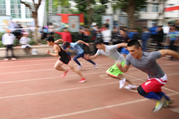 男子100米决赛:你看那径赛场上的运动员,一个个如矫兔般飞离起点,像利箭般冲向终点,引得在场的观众兴奋不已。