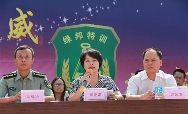 随后,覃艳娟书记代表学院党委、行政和全体师生员工向训练基地和全体教官表示感谢,并向全体新生表示欢迎。她从办学历史、人才培养目标等方面详细介绍了学院的基本情况,并从为什么要军训、通过军训收获什么、如何完成军训任务三方面强调了军训的重要性。就如何顺利完成军训,覃书记分别对学生和教官提出要求。要求学生一要做好吃苦的思想准备,二要以军人的标准严格要求自己,三要不断提高自身综合素质;要求教官树立四种思想:一要树立“安全第一”的思想,二要树立“以人为本”的思想,三要树立“勇于吃苦”的思想,四要树立“崇军尚武”的思想。最后,她以梁启超先生的《少年中国说》一文勉励同学们刻苦训练,认真学习,树立强烈的责任意识和担当意识,并预祝同学们在军训中学有所成,本次军事训练取得圆满成功。