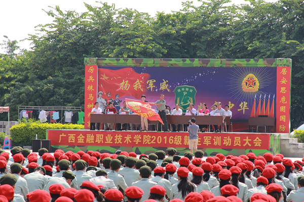 9月19日上午,伟德官网2016级新生军训动员大会在广西绿邦国防教育训练基地隆重举行。广西绿邦国防教育训练基地主任刘成华,军训团团长张彦华,党委书记覃艳娟,院长沈立君,党委副书记、纪委书记刘华政,副院长谢沛善,院长助理罗坚,各系、部及军训办领导出席大会。