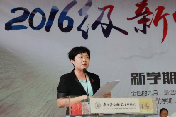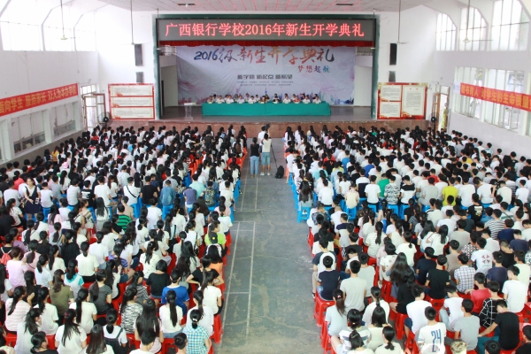 8月22日上午,广西银行学校2016年新生开学典礼在学校大礼堂隆重举行。广西银行学校党委书记覃艳娟,校长沈立君,党委副书记、纪委书记刘华政,副校长谢沛善,中层领导以及全体2016年新生参加本次开学典礼。典礼由党委书记覃艳娟主持。