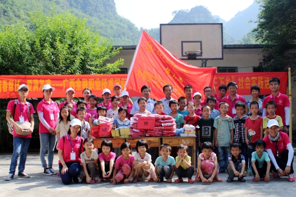 上午九时许,团队一行19人抵达内闷小学,受到该小学罗玉学校长及师生的热烈欢迎。内闷小学地处大山深处,教学基础设施较为薄弱,现有学生大多为留守儿童。针对这一情况,团队为该校送来一批文具用品及油、米,还特意为每位小学生准备了一套量身定做的衣服。罗校长从陈明健书记手中接过沉甸甸的物资,激动地说:“感谢伟德国际victor1946的领导和师生们,你们的爱心举动让我们感动并深受鼓舞,内闷小学的师生不会忘记你们的关怀,我们将以更好的表现来回馈学院对我们的关爱。”