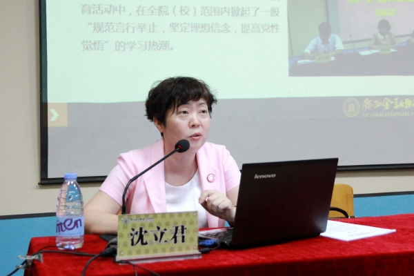 随后,沈立君院长作2016年上半年工作总结。她从党建、新校区建设、教学管理改革、师资队伍建设、国际交流与合作、继续教育和社会培训,招生就业工作、学生管理、推进学校综合改革以及廉政建设等方面详细总结了上半年学校工作取得的成绩,并布置假期有关工作。沈院长就假期工作提出三点要求:一、提高认识,增强责任感和紧迫感。新校区工程建设时间紧、任务重,大家要把思想和行动统一到学校党委和行政的具体部署上来,一切工作重点都要以顺利搬迁入新校区为重点,上下形成合力,积极主动开展工作,确保每一项工作任务的完成。二、攻坚克难,勇创佳绩。各职能部门和系部要根据学院工作部署,突出工作重点和难点,做到各司其职、各尽其力,齐心协力,全力以赴推动各项措施落地见效。三、廉洁自律,遵守规定。要按照学校发展需要制定各自的发展目标,加快本单位制度体系建设,在项目建设中,严格工作程序、规范流程管理,加强学校专项经费、各重大项目的开支等招投标工作监督,真正做到照章办事,违章必究。