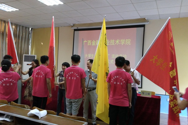 大学生暑期“三下乡”实践活动得到学院领导的高度重视和大力支持,学院党委书记覃艳娟、学院党委副书记刘华政、学生工处负责人兼团委书记周海峰、金融系主任王清星、会计系主任张红梅主任以及各系部团总支书记和三支“三下乡”队伍的志愿者共五十几名师生参加了7月9日上午9点在电一举行了启动仪式(如图一)。覃艳娟书记在启动仪式上做了重要指示,旨在希望各位优秀的志愿者们能肩负重任,吃苦耐劳,认真践行社会主义核心价值观,并真诚祝愿志愿者们凯旋。