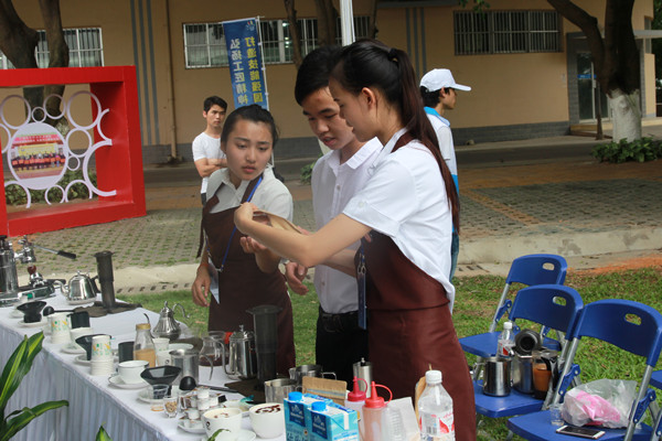 5月9日上午,由自治区教育厅主办、主题为“弘扬工匠精神,打造技能强国”的第二届广西职业教育活动周隆重开幕。伟德官网旅游管理系与北海百合文化传播有限公司共同合作,通过旅游专业技能展示项目,现场提供紧贴群众生活的服务活动,让观光者感受职业教育服务美好生活,学生通过现场花式调酒、咖啡艺术、冷饮售卖服务,一方面展示学生服务技能,另一方面推介学院的学生创业基地建设情况。