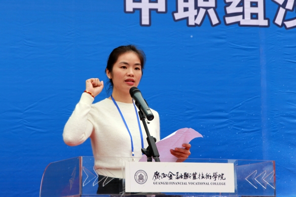 随后,新道科技股份有限公司广西分公司总经理高莹莹致辞。本赛项裁判长、广西大学商学院教授范伟宣布比赛规则,参赛选手代表和裁判员代表进行宣誓。