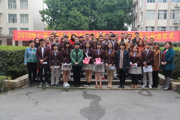 2月19日上午,伟德官网举行2016年学生赴台湾学习交流欢送仪式。学院党委书记覃艳娟,院长沈立君,各相关处室负责人,指导老师,班主任,家长和全体赴台同学参加欢送仪式。
