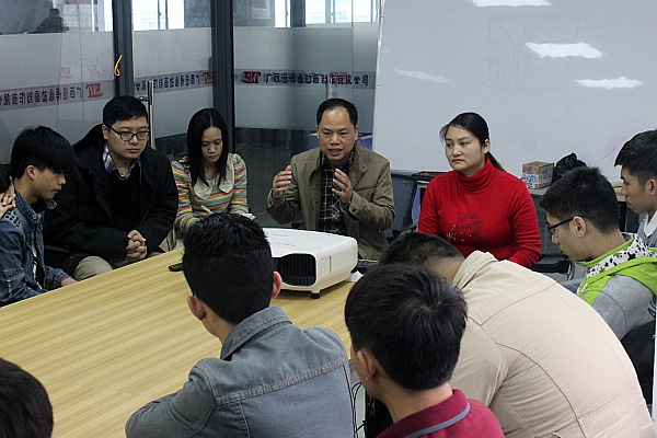 3月2日上午,副院长谢沛善、信息技术系主任唐雪涛和专业骨干教师仇雅带领2014级数字媒体技术应用专业学生到广西漫博通动画制作有限公司进行了别开生面的新学期第一节课,得到了广西漫博通公司副总经理李玲的热情接待。本次实践教学是伟德官网信息技术系在校企合作课程改革中的一项重大突破,目的是将课堂与企业实践相融合,通过校企深度合作践行现代学徒制教学模式。
