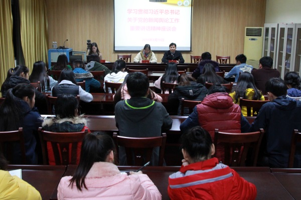 为学习贯彻习近平总书记关于党的新闻舆论工作重要讲话精神,让伟德官网新闻工作者深入了解习近平总书记对于新闻行业的重视和要求,认识新闻媒体的重要性,3月16号晚,伟德官网召开新闻工作者学习贯彻习近平总书记关于党的新闻舆论工作重要讲话精神座谈会。学院党委副书记、纪委书记刘华政,党政办公室副主任韩蓓丽,相关教师、通讯员代表及新闻媒体中心全体成员参加本次会议。党政办公室宣传科科长陶琳主持会议。