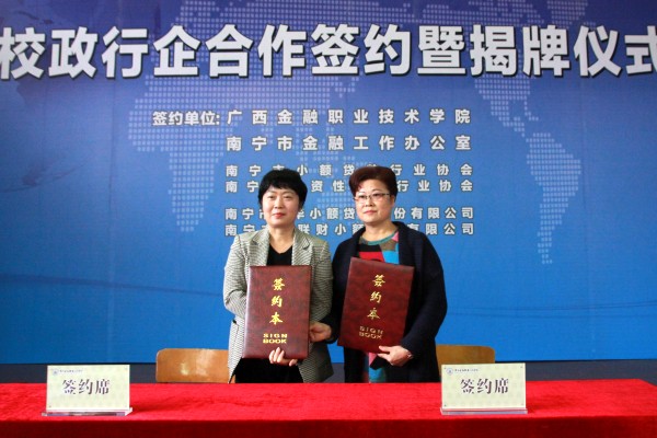 随后,沈立君院长代表学院分别与南宁市金融办、南宁市小额贷款行业协会、南宁市融资性担保行业协会、南宁市瀚华小额贷款有限公司、南宁市亚联财小额贷款有限公司签约并揭牌。中国小额信贷联盟秘书长白澄宇做了题为“互联网时代小贷公司创新与发展”的形势报告。