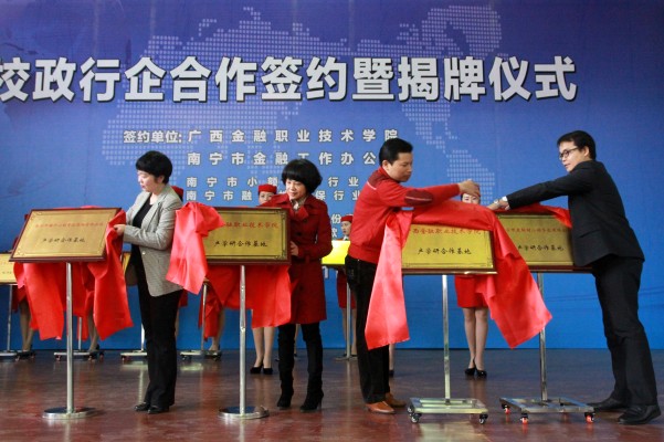 此次校政行企战略合作,是广西金融行业相关各方贯彻落实《国务院关于加快发展现代职业教育的决定》和《现代职业教育体系建设规划(2014-2020年)》,推进产教融合、校企合作,创新发展高等职业教育协同育人新机制的一个重大举措。其旨在以政府主导、行业指导、企业参与,学校积极发挥办学主体作用,共同建设一个“校政行企一体化育人、一体化创新发展”的现代职业教育一体化联盟。合作各方遵循高等职业教育“产业性、行业性、企业性、职业性和实践性”的特性,借助政府金融管理部门的政策导向作用,发挥金融行业协会的专业指导和桥梁纽带作用,利用金融企业生产服务一线的专业人才和资源条件,突出金融院校在学科专业和人才培养资源优势,聚合“校、政、行、企”四方,以共同制定人才培养方案、共建实训基地、职业培训、开展应用型课题研究等具体措施,在人才培养、科研合作、决策咨询、服务社会等领域开展全方位、深层次合作,促进高等职业教育与广西经济社会发展需求和金融产业升级进行良好对接。
