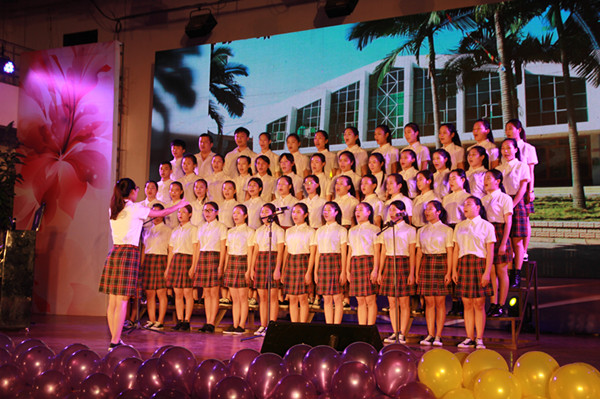 此次晚会分为节目表演、比赛回顾及颁奖三个环节。晚会舞台布置精美,大屏幕LED显示屏成了一大亮点。在节目表演环节中,高职会计1504班带来的歌曲合唱振奋人心,表达了学生的爱校热情和拼搏精神;礼仪队的同学们以良好的精神风貌和优美的仪态为观众展示了站姿、坐姿、走姿、蹲姿等日常礼仪;辅导员老师们带来的诗歌朗诵以清新的表现形式展现了师生之情,感人至深;情景剧《人生》以简洁明了的表现手法表达了人生不同阶段的酸甜苦辣,发人深思;舞蹈节目《金色汤瓶》以独特的服装造型和轻盈曼妙的舞姿演绎了异域风情,将整场晚会推向了高潮。除此之外,还有在文化艺术节比赛中获奖的同学带来的原创歌曲弹唱、书法展示、独唱以及现代舞等节目。绚丽多变的舞台背景加上演员们的精彩表演,吸引了在场所有观众的眼球,现场掌声、欢呼声一浪高过一浪。