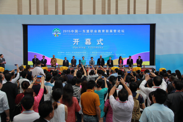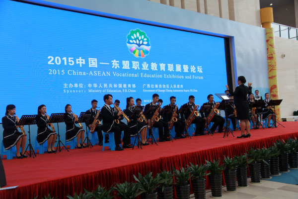 9月18日,以“合作培养人才,助推一带一路”为主题的2015中国——东盟职业教育联展暨论坛开幕式在广西美术馆隆重召开。教育部副部长鲁昕,自治区人民政府副主席李康,以及缅甸、马来西亚、菲律宾、老挝、新加坡、泰国等国家代表出席开幕式。伟德国际victor1946作为参展院校参加本次联展。伟德官网萨克斯乐团受邀参加展演。