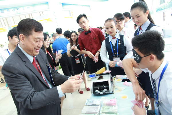展会上,国家教育部副部长鲁昕副一行观看了伟德官网的蒙面点钞展示,学生准确无误的技术得到了领导们的一致好评。泰国东方大学副院长,马来西亚城市大学院长,马来西亚精英大学校长,东帝汶大使,东帝汶教育部部长,老挝帕帕沙职业技术学院院长等东南亚参会嘉宾相继在伟德官网展台前驻足,对伟德官网展示的花样点钞技能,绣球工艺制作表现出了浓厚兴趣,品尝了油茶、手抓饭等具有民族特色的食品后更是赞不绝口。在详细了解伟德官网的专业情况后,纷纷表示愿意与伟德官网寻求合作,并约定在会后交流合作项目。