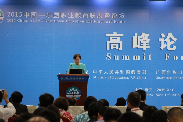 教育部副部长鲁昕作了《加强中国-东盟职业教育交流与合作助推“一带一路”建设》的主旨发言,广西壮族自治区副主席李康作了《创新发展模式 深化交流合作》的主旨演讲。会上提出,广西要全面推进职业教育开放合作,扩大与东盟国家的合作,并开展与欧盟国家的合作。
