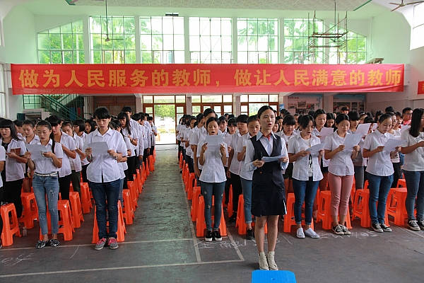 同时,学院(校)继续开展“以老带新”的青蓝工程,举行新老班主任、新老教师结对子签约仪式,帮助新教师尽快成长。在金融系欧捷老师的带领下,全体新录聘员工进行了入职宣誓。