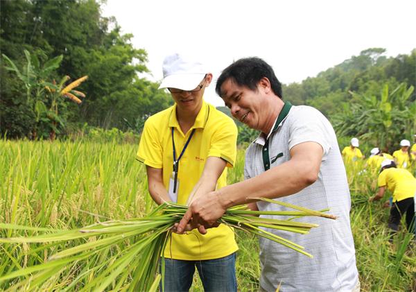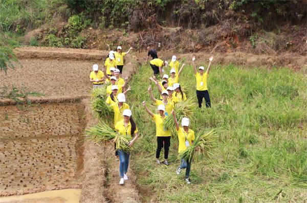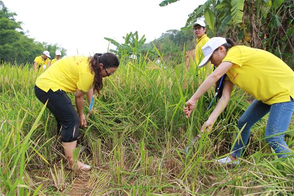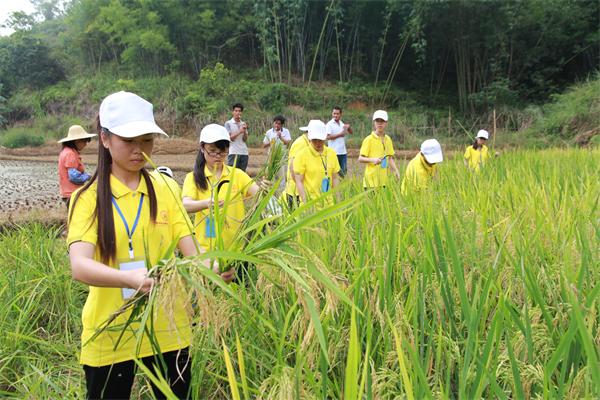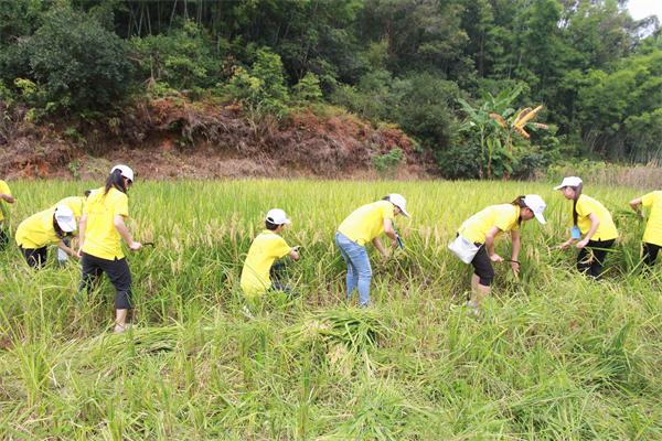 7月19日,伟德国际victor1946大学生暑期“三下乡”社会实践活动服务队顶着烈日深入田间地头为村民收割稻谷。