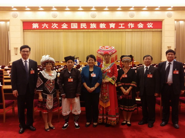 8月18日,第六次全国民族教育工作会议在京举行。广西作为少数民族聚居地区,选派了四名少数民族教师代表出席会议。自治区副主席李康带队,教育厅厅长秦斌、民委主任卢献匾、统战部副部长卢能干以及来自基层教育战线四名教师代表参加了会议。伟德官网金融教学部教师欧捷作为瑶族教师代表应邀参会。