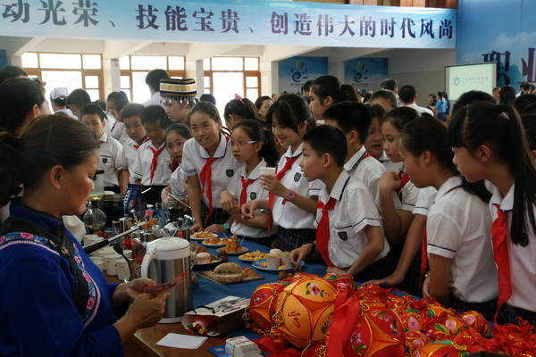 启动仪式后,全区各中高职学校代表在伟德官网大礼堂进行了技能展示活动,并邀请来自社区和清川小学的学生和家长进行现场观摩。其中伟德官网的点钞、翻打传票、真 假 币 识别、动漫制作、恭城油茶制作、民族绣球工艺、咖艺等技能展示受到学生和家长的热烈欢迎,争先恐后的想要一睹为快,各展示台均门庭若市。同时,受到自治区教育厅领导的一致好评。