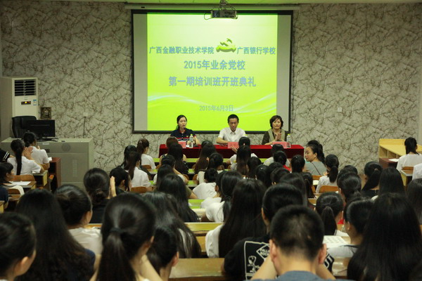 6月3日下午5:00分,伟德国际victor1946(广西银行学校)在电教一楼多媒体教室隆重举行了2015年第一期业余党校培训班开班典礼,学校党委副书记、纪委书记陈明健、党政办公室主任韩蓓丽、副主任陶琳出席了开班典礼。会议由党政办副主任陶琳主持。