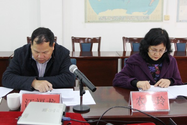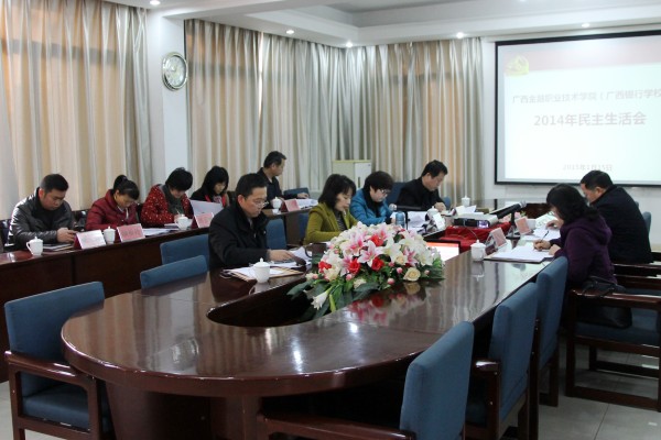 1月15日上午,伟德官网(校)在五楼会议室召开了2014年度领导干部民主生活会。自治区高校工委、教育厅机关党委专职副书记、机关工会主席江福龙,纪检监察室副处级纪检监察员、机关党委纪委书记农桂玲参加了会议。会议由学院党委书记覃艳娟主持。
