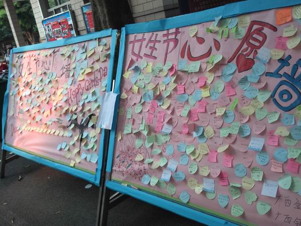 此次活动包含“心愿墙”和“我美丽,我自拍”两项内容,新颖、简单、有趣的活动形式吸引了众多同学的踊跃参与。4月2日和4月3日,在“心愿墙”活动当天,学生会干部为女生们免费发放了精美的心愿卡。女生们将自己的心愿写到心愿卡上,并将心愿卡贴在展板上进行展示。短短时间内,展板就被各式各样的心愿卡所覆盖。爱护关心女生的男生们也纷纷来到活动现场,了解女生们的心愿,为她们送上鼓励和祝福。在“我美丽,我自拍”活动中,女生们的参与热情空前高涨,她们用手机或相机进行自拍,踊跃参与自拍照的评选活动,诠释自身的美丽、自信和魅力。评委从女生们上交的上百张自拍照中精心挑选出8张,放置到伟德官网微信公众号上,让同学们进行投票,最终评选出三张最美自拍照并进行奖励。
