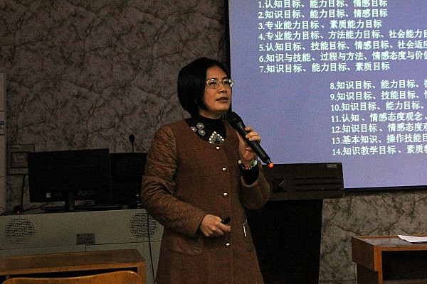黄艳芳教授也就教师们的教学设计作了点评,同时以“如何做教学设计”为主题,对在场的全体教师进行一次现场培训。