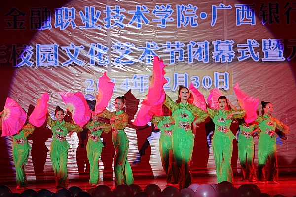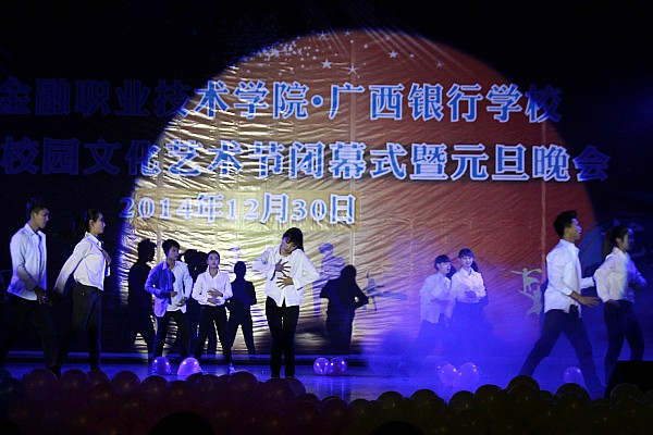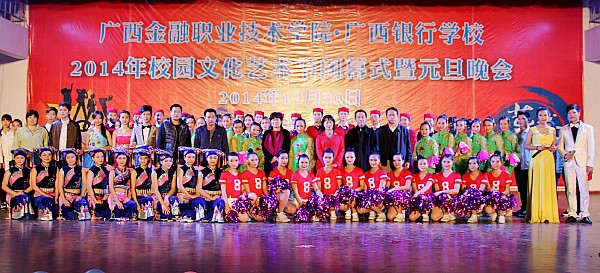 12月30日晚8时,“伟德国际victor1946、广西银行学校2014年校园科技文化艺术节闭幕式暨2015年元旦文艺晚会”在大礼堂激情上演。学院覃艳娟书记,学院院长、广西银行学校校长沈立君等领导亲临现场欣赏了晚会,出席晚会的还有伟德国际victor1946、广西银行学校全校师生、兄弟学校的代表。