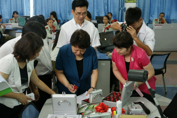 李康副主席在虚拟商业社会环境实训基地参与实训操作