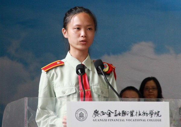 新生代表梁艺馨同学发言